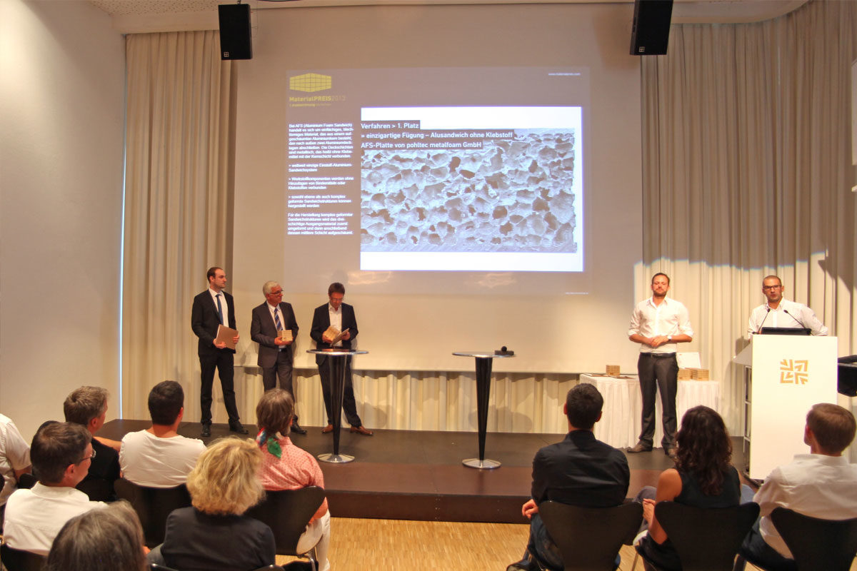 Am bisher heißesten Tag des Jahres wurde die Preisverleihung am 19. Juni 2013 im Haus der Architekten, dem Sitz der baden-württembergischen Architektenkammer in Stuttgart, gefeiert. Mehr als 150 geladene Gäste, Preisträger, Architekten und Planer fieberten der Verkündung entgegen. Alle Materialien der Preisträger wurden von Geschäftsführer Hannes Bäuerle jeweils kurz vorgestellt. Auf der Bühne erhielten die Gewinner dann durch Geschäftsführer Joachim Stumpp feierlich einen Pokal und Ihre Auszeichnung überreicht.