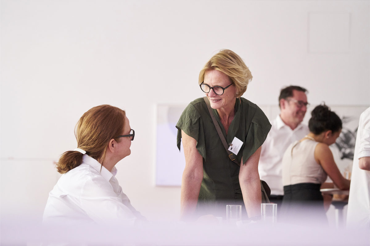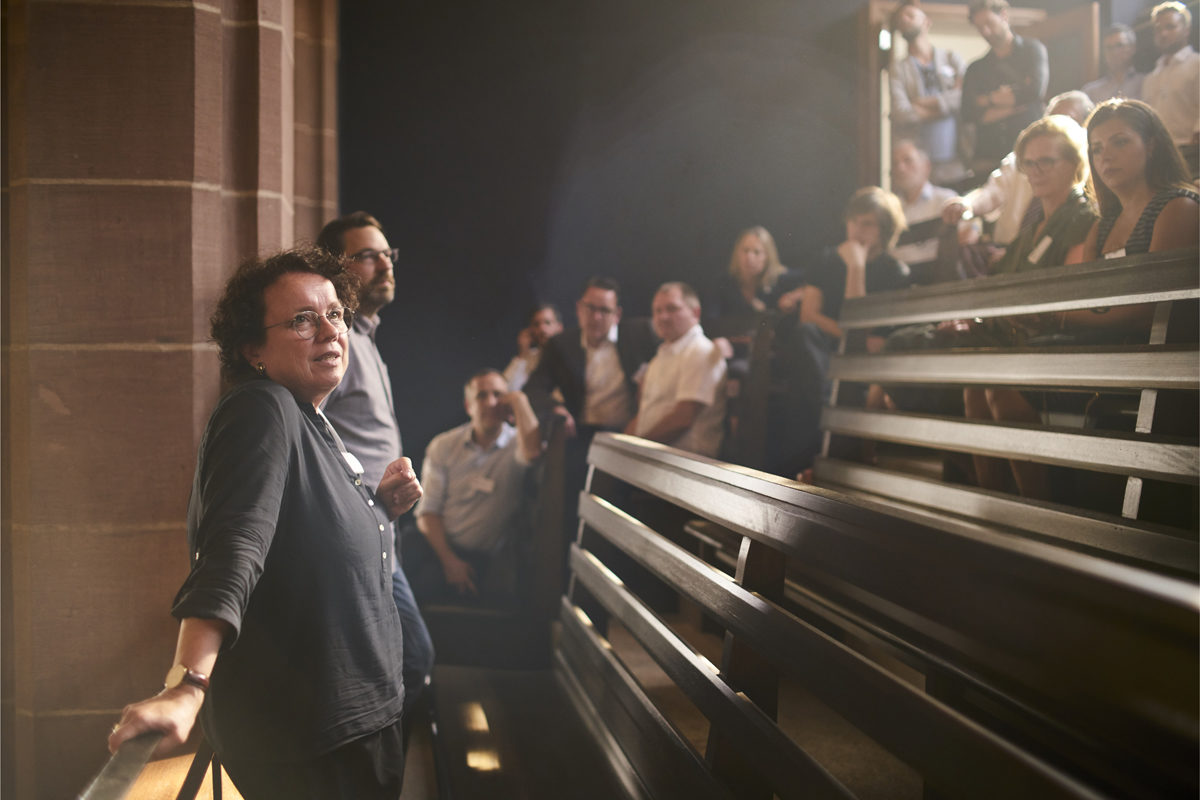 Vor der Veranstaltung hatten Preisträger, Juroren und Sponsoren die Möglichkeit einander kennenzulernen und einen Eindruck des besonderen Ensembles des Hospitalhofs aus Hospitalkirche, Verwaltungsbau und Innenhof zu gewinnen. Pfarrerin Monika Renninger, ihres Zeichens Leiterin des Evang. Bildungszentrums Hospitalhof Stuttgart – und somit Hausherrin –, führte durch die bemerkenswerte Architektur.