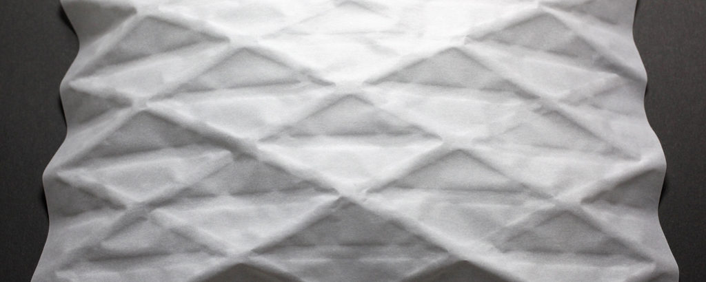 Christophe Guberan, Student der Ecole Cantonale d’art de Lausanne (Ecal), hat ein Druckverfahren entwickelt, bei dem sich Papier wie von Geisterhand von selbst faltet. Ein Tintenstrahldrucker bringt die spezielle Tinte in definierten Mustern auf ein dazu angepasstes Papier auf. Nach dem Druck trocknet die Tinte langsam aus, und das Papier faltet sich „automatisch“ langsam in die gewünschte Form – die überraschend komplex sein kann.