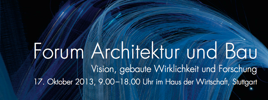 Das Institut für Leichtbau Entwerfen und Konstruieren (ILEK) der Universität Stuttgart, das Institut für Textil- und Verfahrenstechnik Denkendorf und die Allianz Faserbasierte Werk- stoffe Baden-Württemberg e.V. AFBW, veranstalten in Stuttgart im Konferenzraum der König-Karl-Halle am 17. Oktober 2013, das „Forum Architektur und Bau – Vision, gebaute Wirklichkeit und Forschung“ und ladet alle interessierten dazu ein. Außerdem gibt es eine Begleitausstellung zum Thema Ressourcen- und Energieeffizienz.