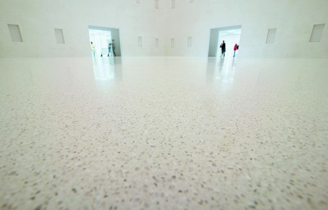 Die Neue Stadtbibliothek in Stuttgart ist eröffnet. Über eine halbe Millionen Bücher finden Platz auf 11 Etagen. Der Architekt Prof. Eun Young Yi kreierte einen monolithischen kristallartigen Baukörper im Zentrum von Stuttgart. Aber nicht nur der moderne Einsatz von Glaswürfeln in der Fassade ist faszinierend. Im Inneren baute Eun Young Yi dem Gebäude ein „reines“, weißes Herzen. Boden, Wand und Decke sind überzogen mit „Pandomo“ von Ardex. Eine Dekor-Spachtelmasse, die fast fugenlos durch den Raum fließt. In den Boden wurde Schmuckkörnung zugegeben, während die Schallschutzdecke dem Weiß von Pandomo optisch angepasst wurde. Pandomo wurde aber nicht nur wegen seiner homogenen Ausstrahlung eingesetzt, sondern auch, weil es ein robustes Material ist, das einem intensiven Besucherstrom sehr gut stand hält.