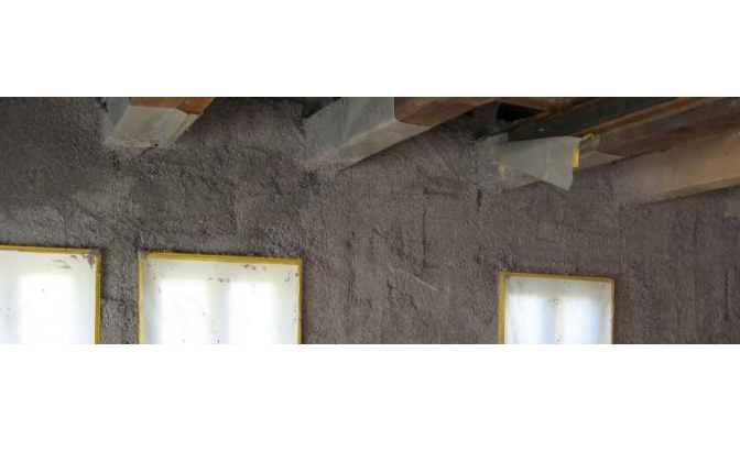 Zellulosedämmung gibt es nicht nur als Einblasdämmung, jetzt kann man sie auch, mittels maschinellem Sprühverfahren, auf die Innenwand aufsprühen. Durch den geringen Klebeanteil haftet die Zellulose sehr gut und trocknet dennoch schnell. Die vollflächige Dämmung lässt sich anschließend mit einem mineralischen Putz sehr gut überdecken und schafft so eine ebene Fläche. Durch die hohe kapillare Saugfähigkeit und den geringen Dampfdiffusionswiderstand, wird Schimmelbildung stark reduziert, da das Material ein Speichereffekt hat und bei bedarf die Feuchtigkeit wieder abgibt.