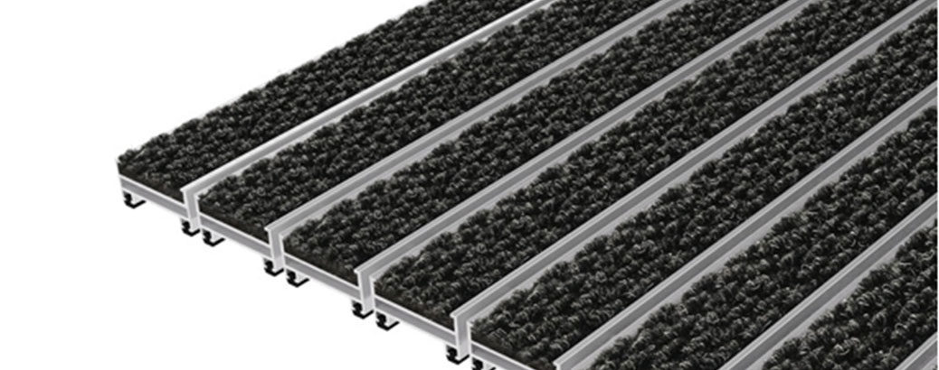 Die Sauberlaufmatte „Green Motion“ von Fuma ist ein wahrlich ökologische Lösung für den Eingang. Aus 5 Teilen bestehend, wird die Matte jeder Zeit und kostenfrei vom Hersteller zu rückgenommen, zerlegt, wiederverwertet und dem Produktkreislauf zurück geführt.