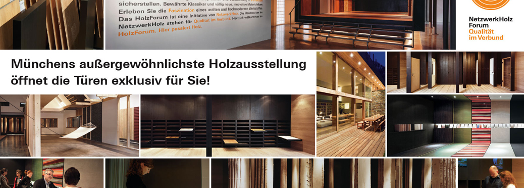 Für Besuche außerhalb der Aktionswochen vereinbaren Sie bitte einen Termin per Telefon [089] 710 426-0 oder E-Mail an Muenchen@NetzwerkHolzForum.de