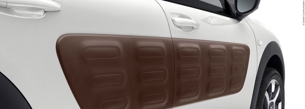 Gelungen ist das mit einem neuen Produkt, das die Längsseiten des Fahrzeugs verkleidet und auf luftgefüllten Kapseln aus Polyurethan basiert, einem Thermoplast, das sich durch hohe Flexibilität auszeichnet. Bei einem leichten seitlichen Stoß können die Kapseln bis zu zwei Zentimeter tief einsinken und anschließend ihre ursprüngliche Form wieder annehmen. – Ein zusätzlicher Schutz am Fahrzeug, der insbesondere im Verkehr der Großstädte oder auf Parkplätzen zahlreiche Vorteile bietet. Er bewahrt vor Schäden beim Anschlagen von Autotüren oder bei Zusammenstößen mit Einkaufswägen.