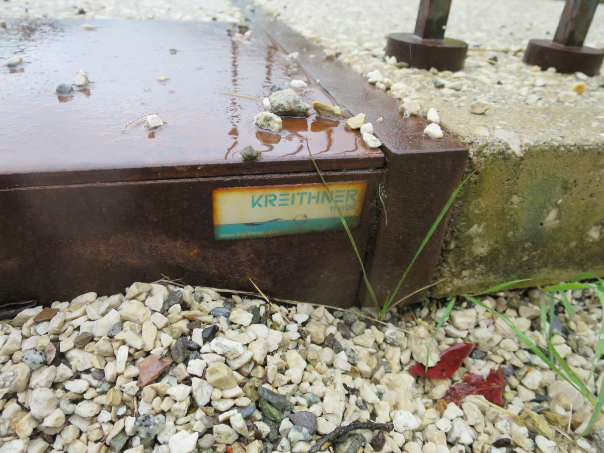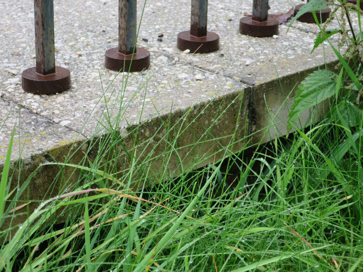 Die entstehenden „Seilkräfte“ wurden über je zwei Dauerlitzenanker in den Boden eingeleitet. Als Spannbänder dienen zwei Flachbleche zu 2x90x15 mm aus Stahl S355. Quer über die Flachbleche wurden Stahlbetonfertigteile gelegt, welche über die Geländerkonstruktion fixiert wurden.